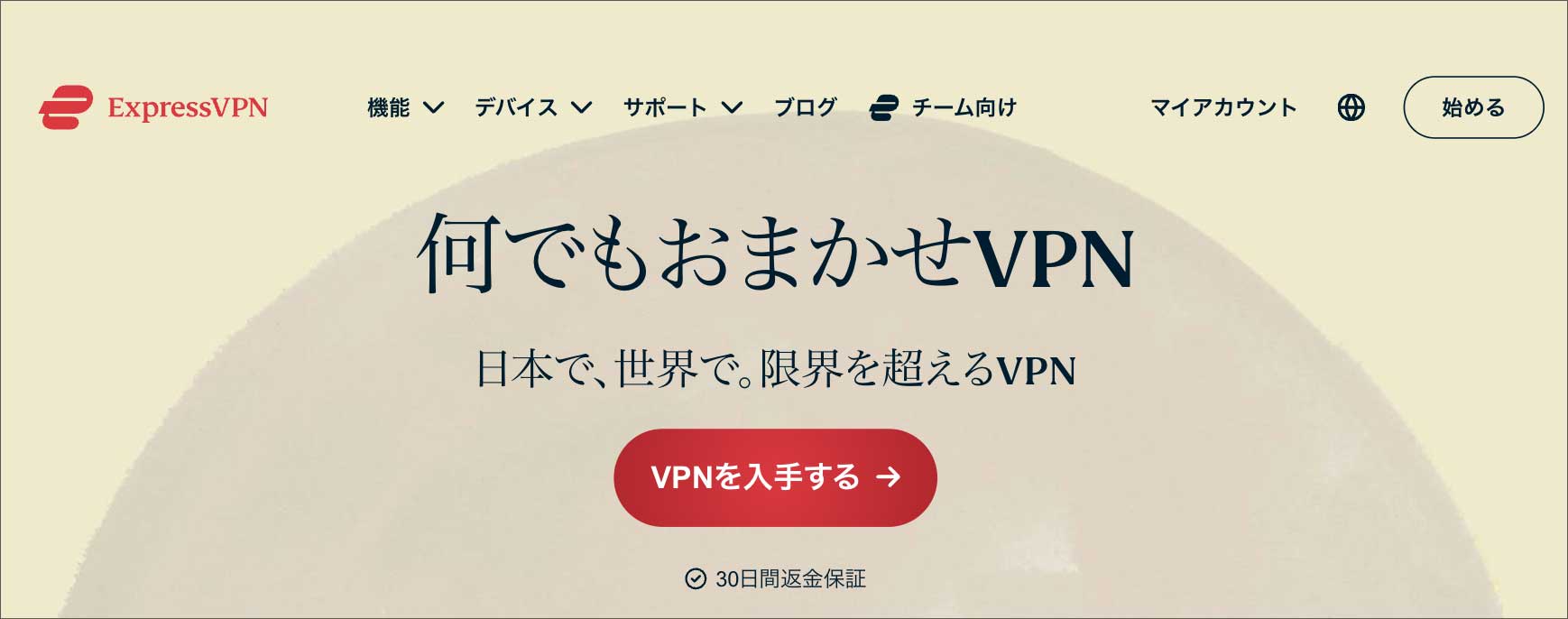 それではExpressVPNの入手方法を解説します。公式サイトはすべて日本語なので迷うことはありません。