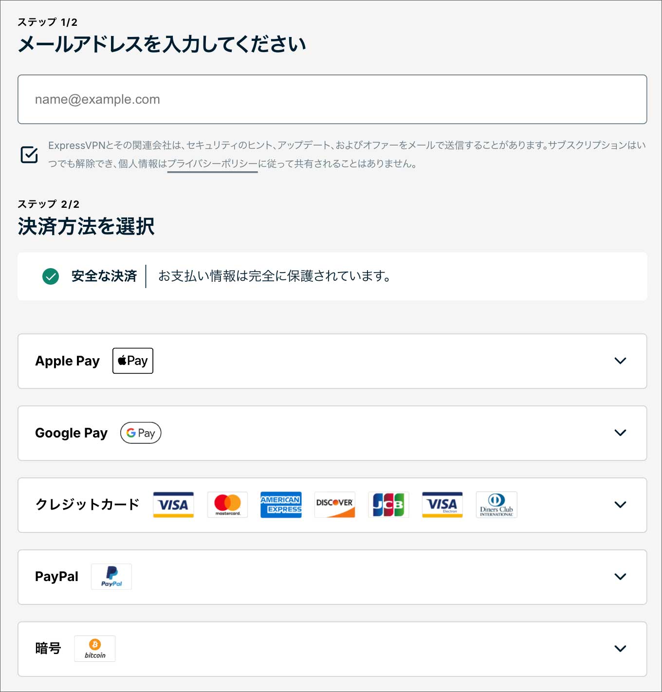 ExpressVPNの料金プランは、以下の3タイプから選べます。