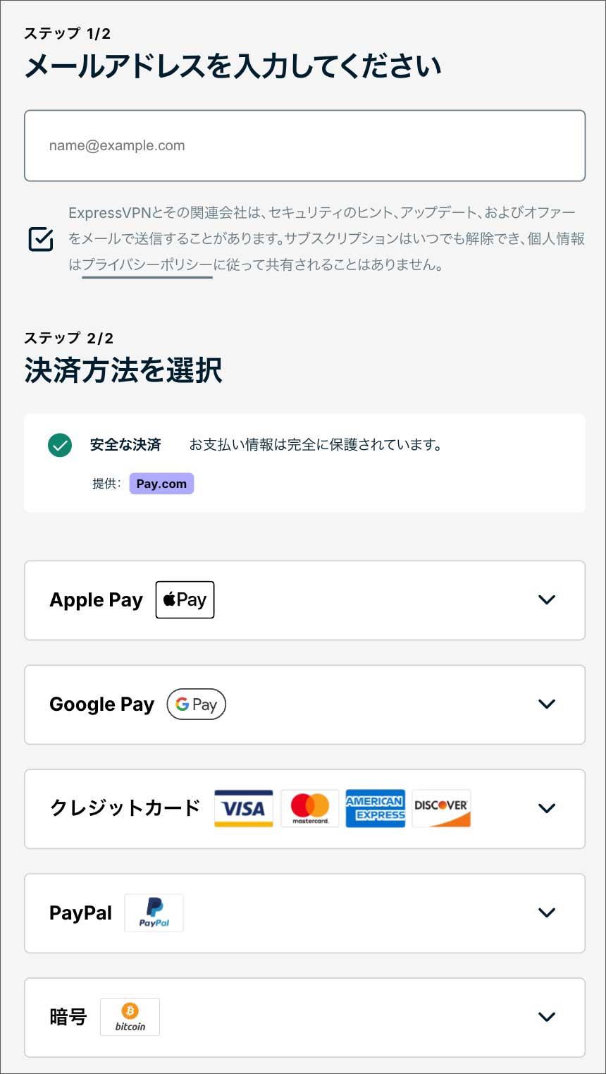 次に支払い方法を選択して、画面に従ってサブスク購入を完了させます。以下の通り多彩な決済手段が用意されています。