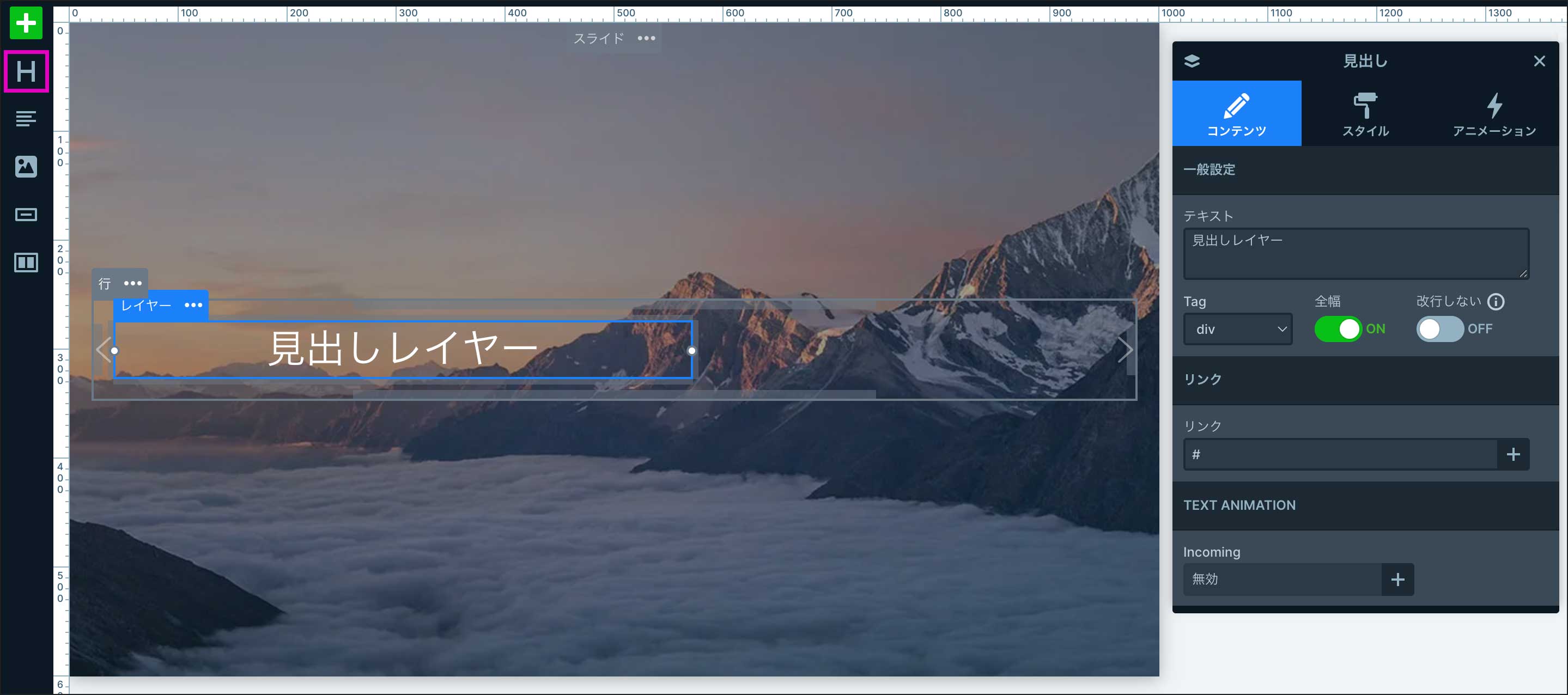 レイヤー追加パネルから『見出し』レイヤーをドラッグ&ドロップで追加します。