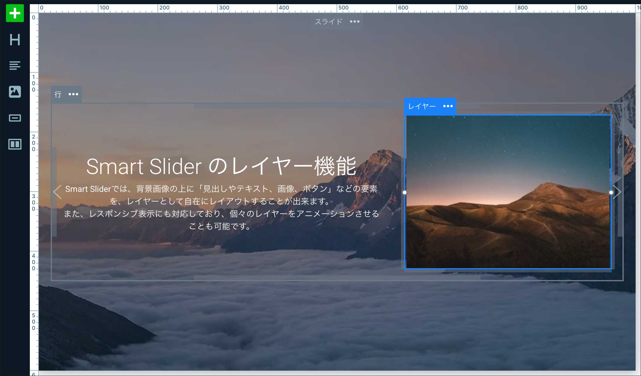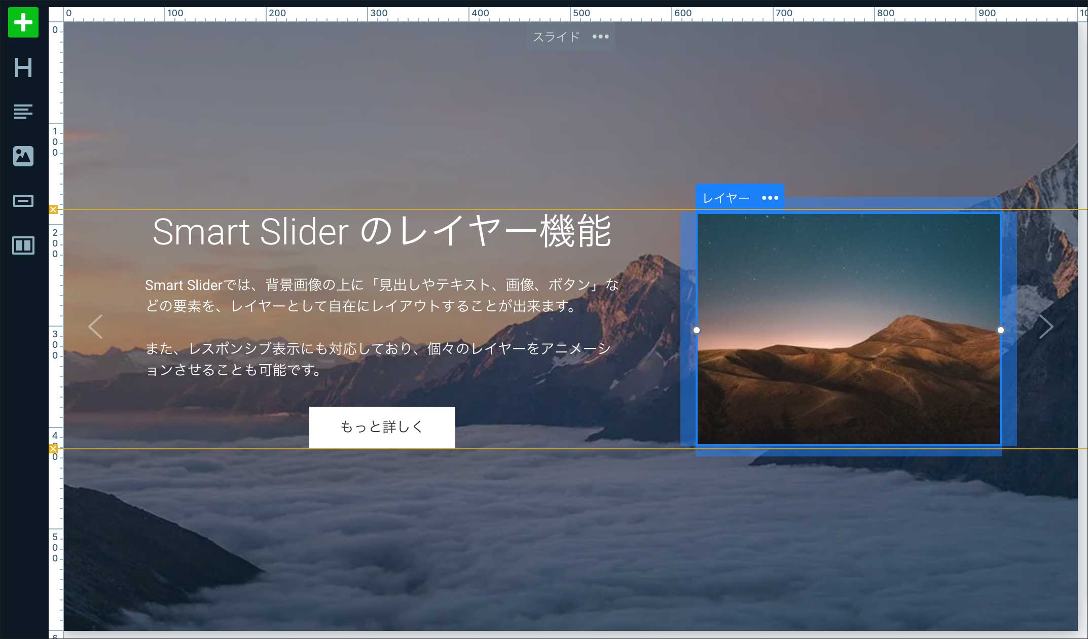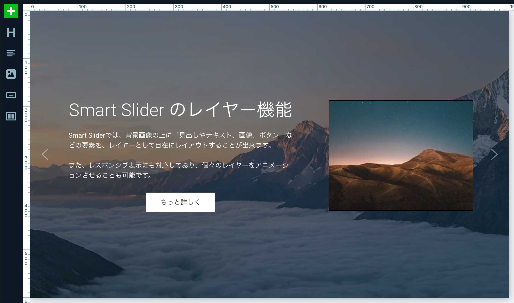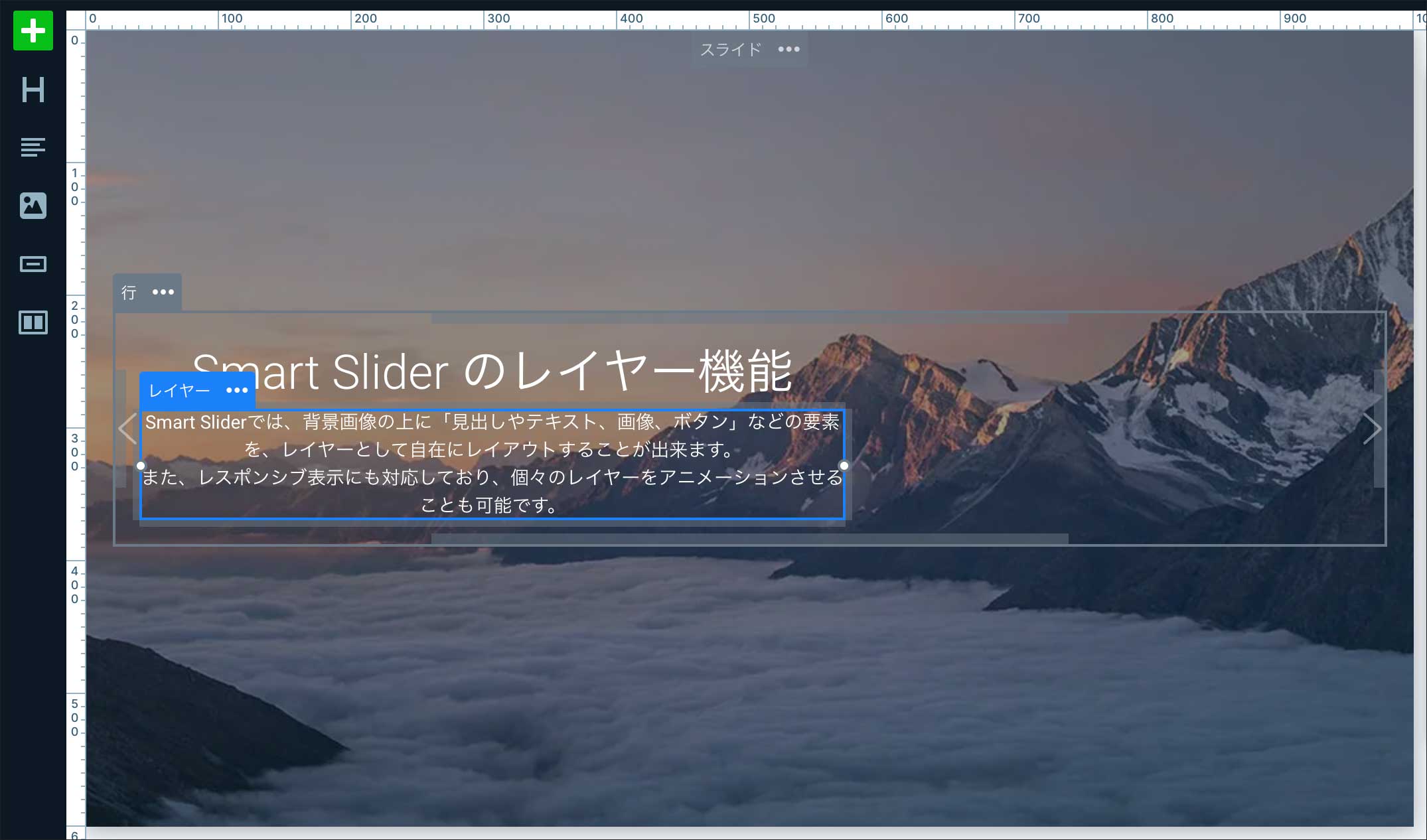 Smart Sliderでは、様々な種類のレイヤー要素を、簡単な手順で配置でき、自在にカスタマイズ出来るようになっています。