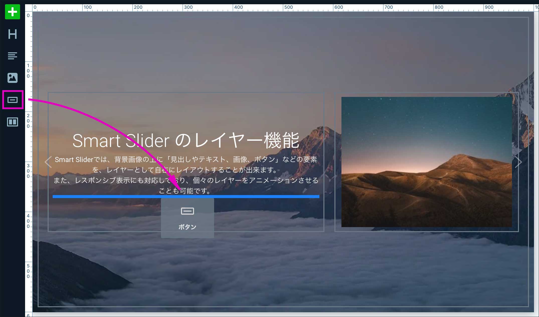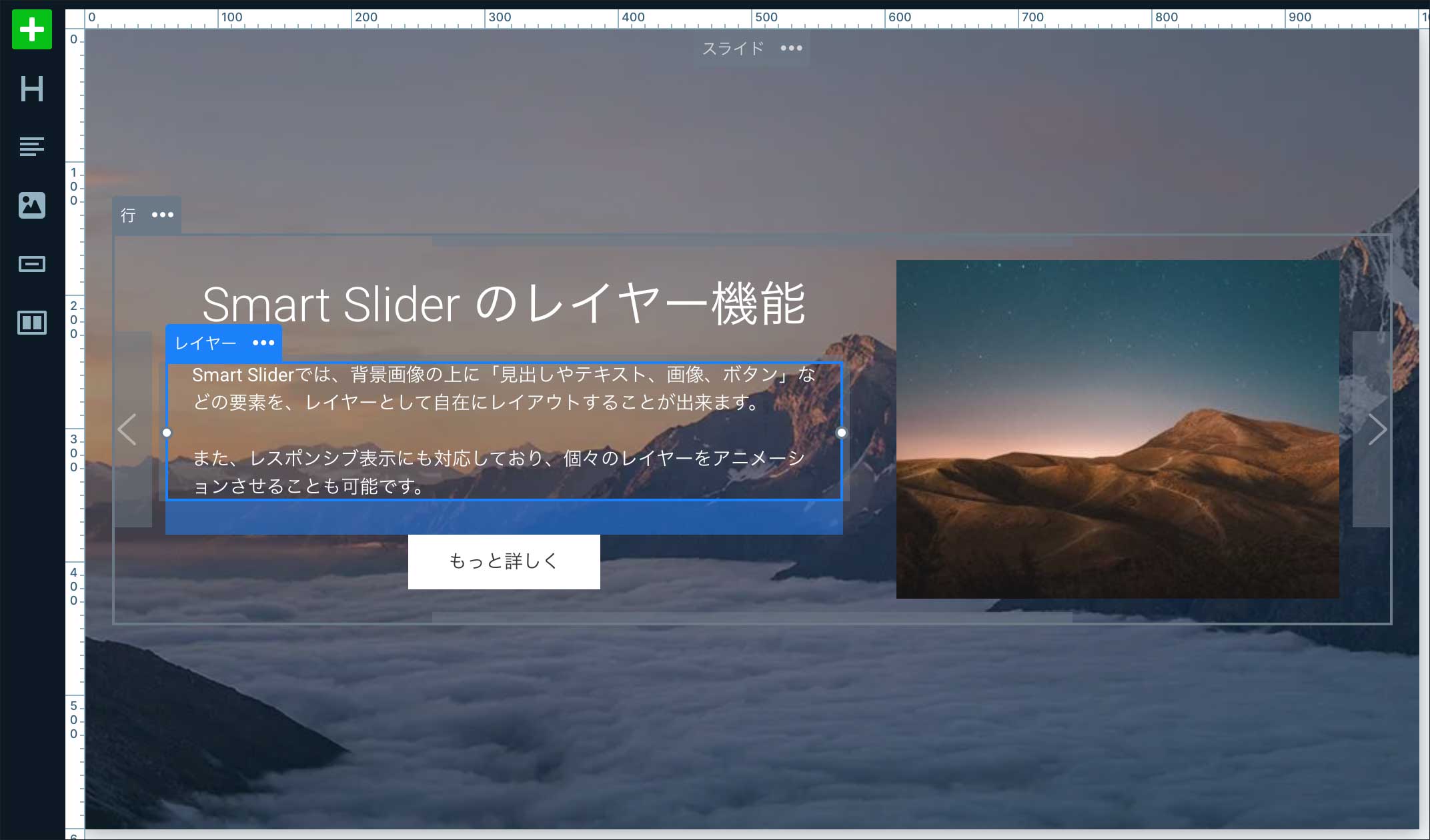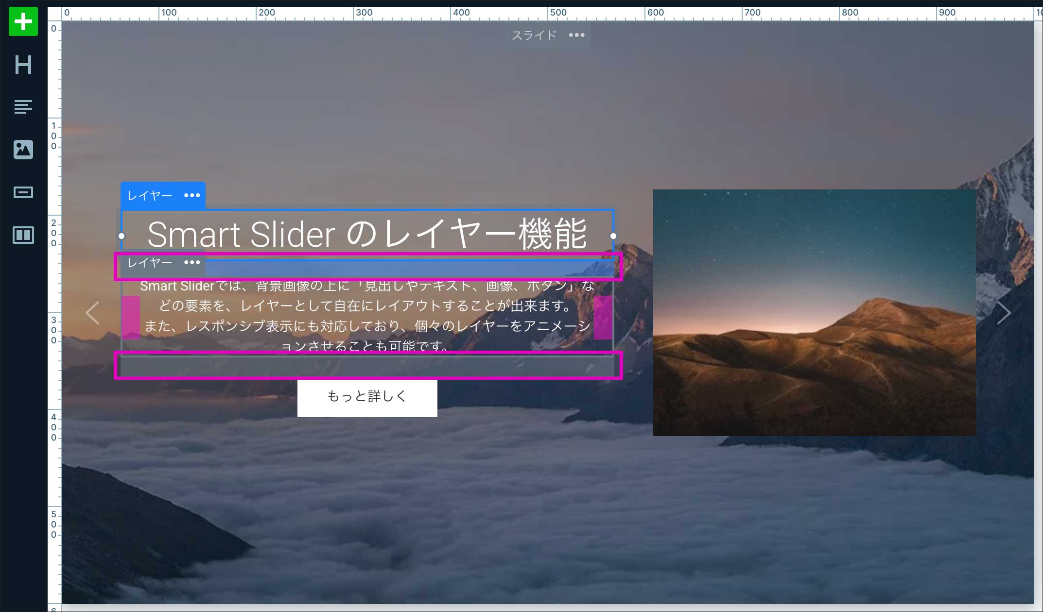 Smart Sliderでは、様々な種類のレイヤー要素を、簡単な手順で配置でき、自在にカスタマイズ出来るようになっています。