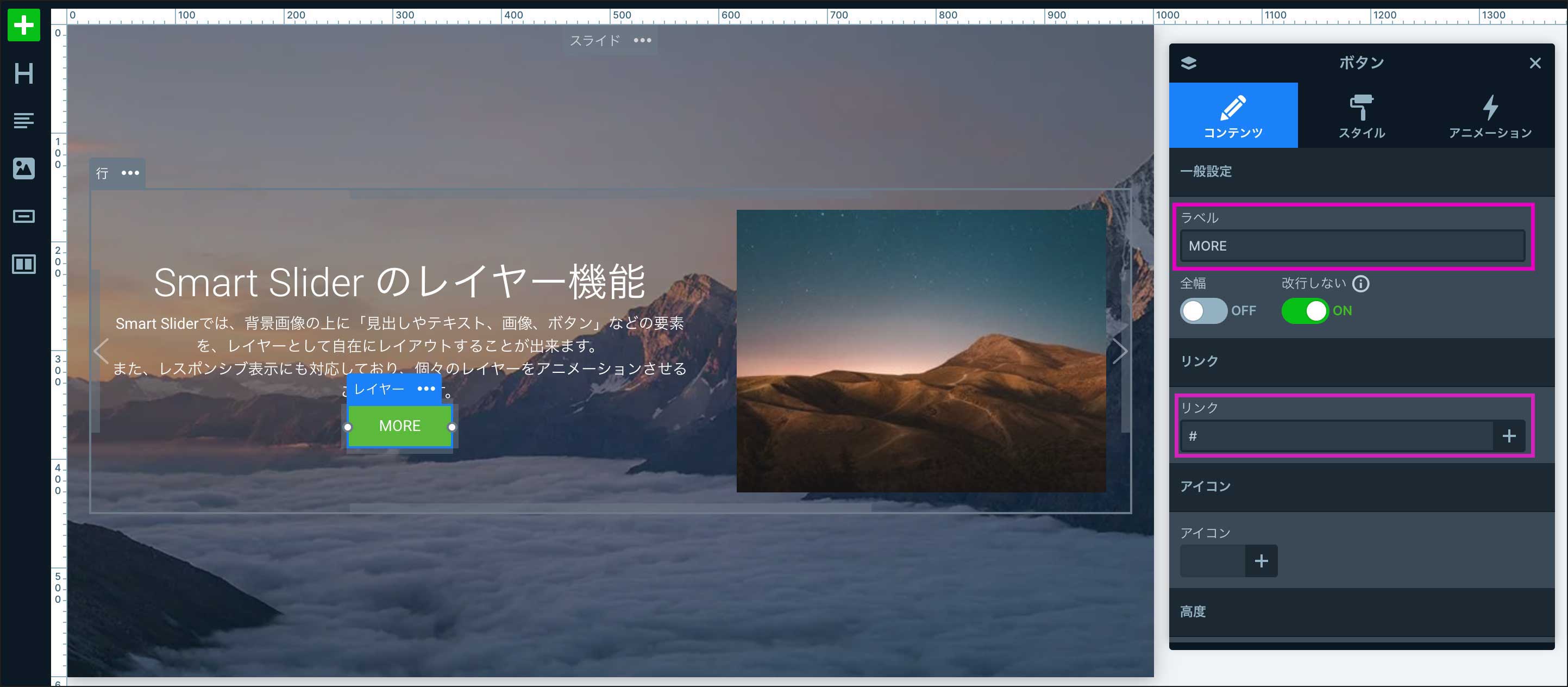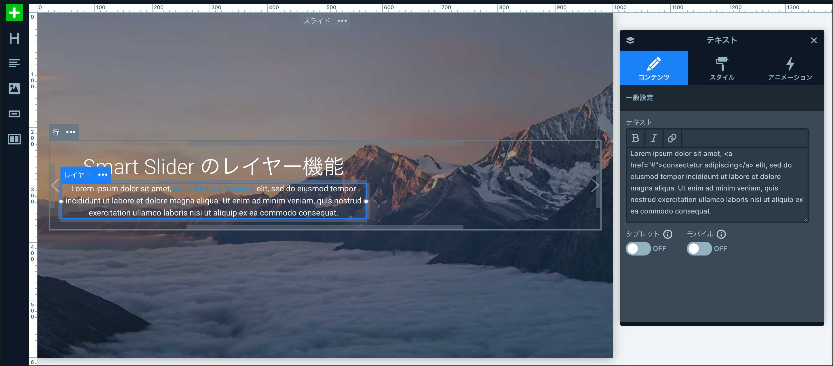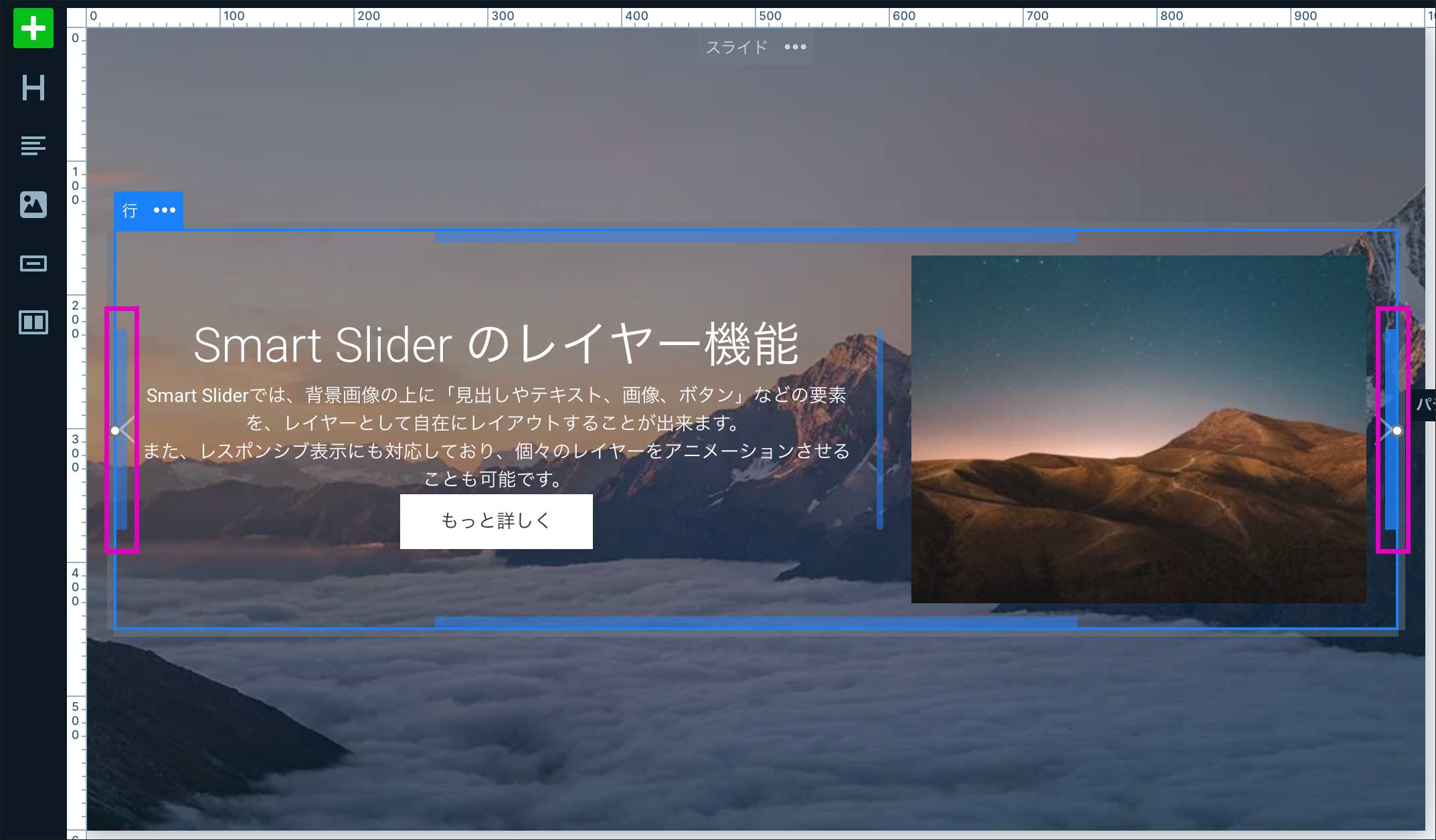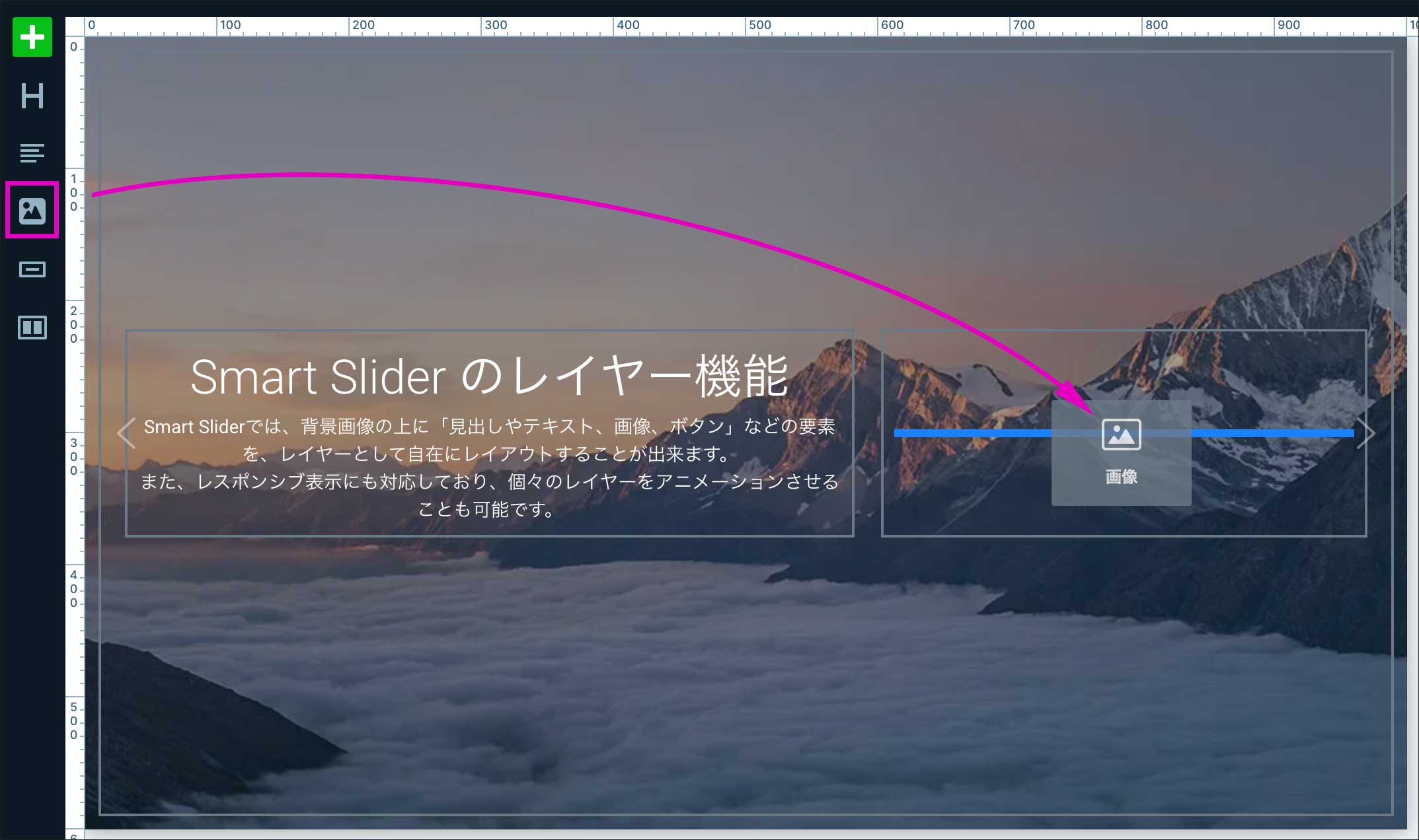 Smart Sliderでは、様々な種類のレイヤー要素を、簡単な手順で配置でき、自在にカスタマイズ出来るようになっています。