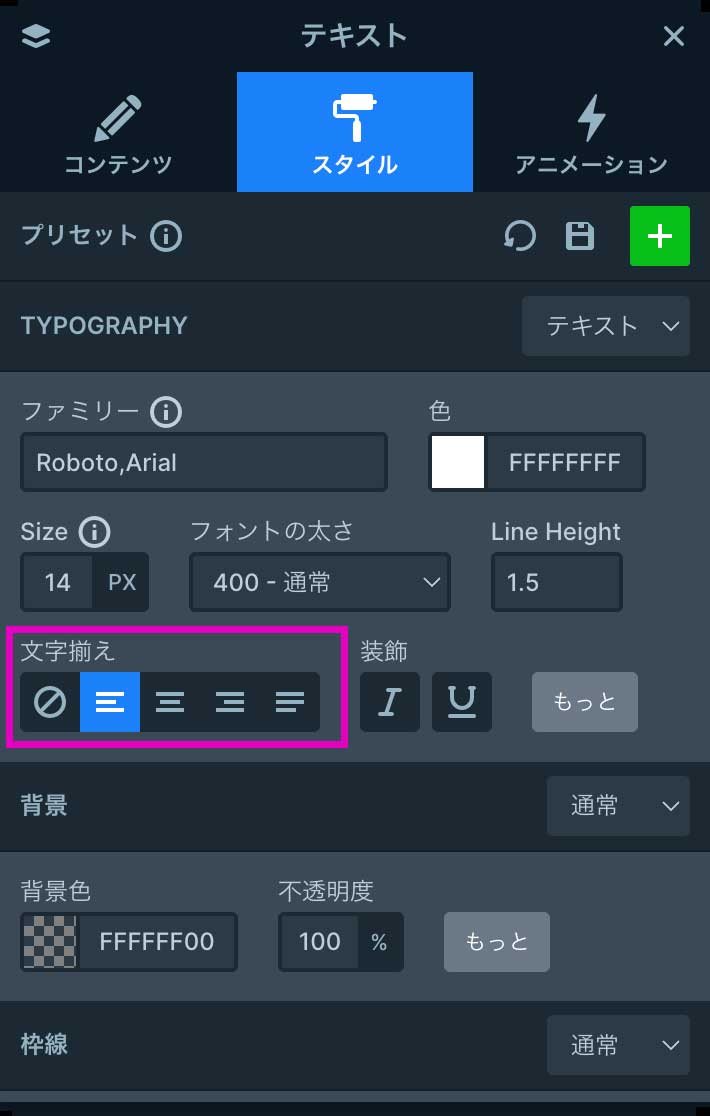 文字揃えや余白の設定などの見た目の調整は、後ほどまとめて行います。