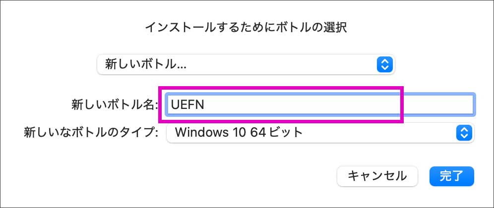 ボトル名 (フォルダ名のようなもの)を自分で決めてからインストールすることも出来ます。