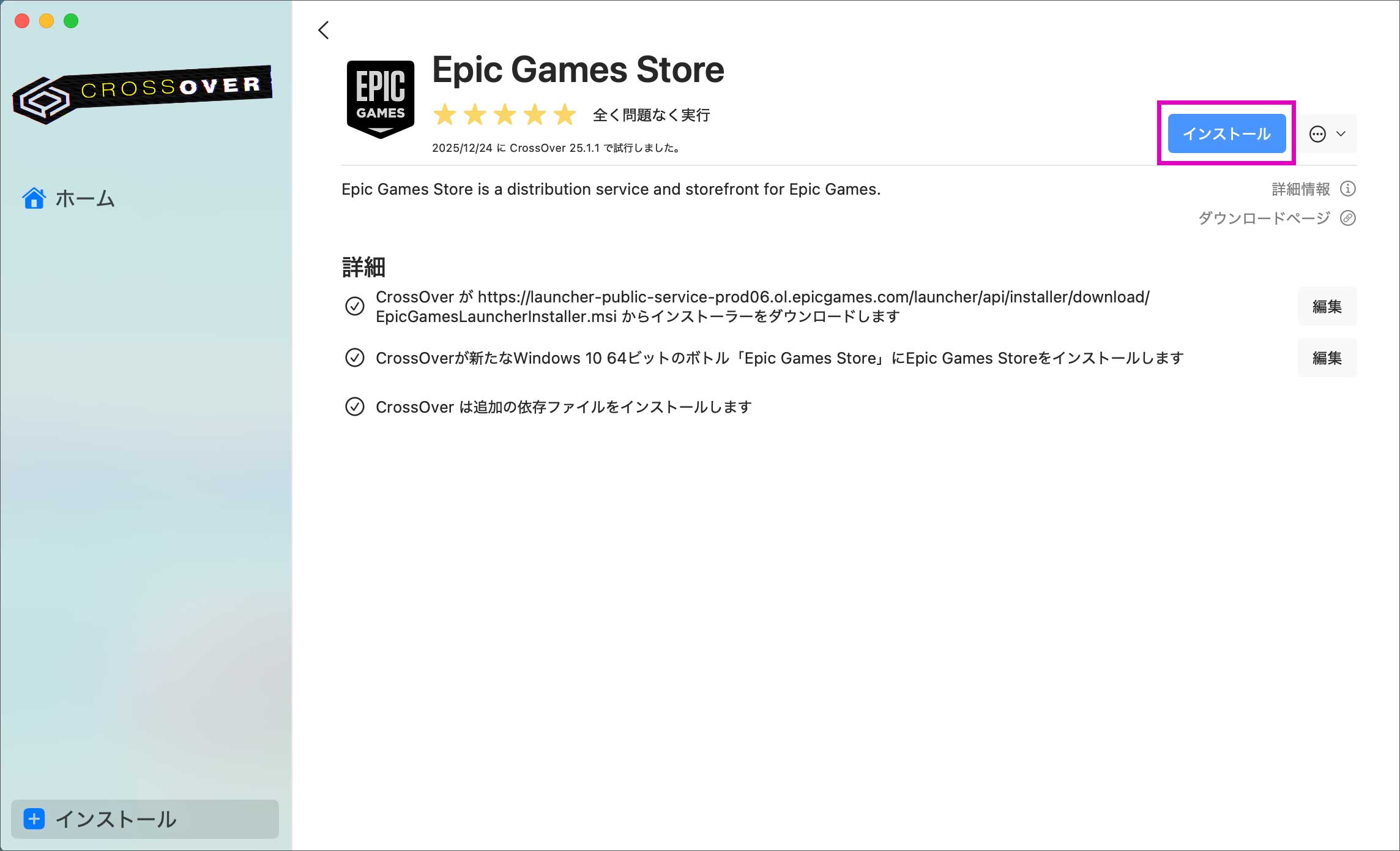 CrossOver Macをインストール