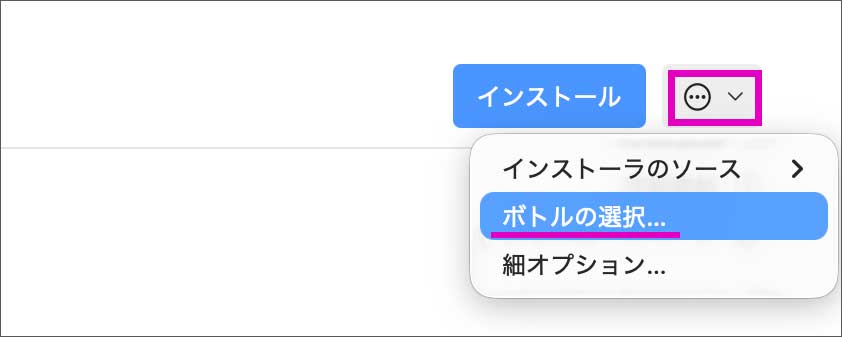 「インストール」ボタンの横のプルダウンから、「ボトルの選択…」を押して、