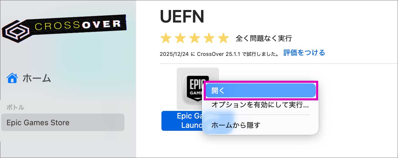 CrossOver Macが開きました。