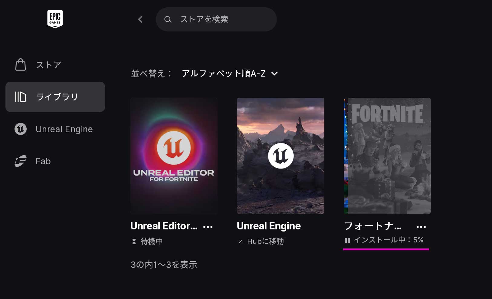 まず「Fortnite」のインストールが始まります。