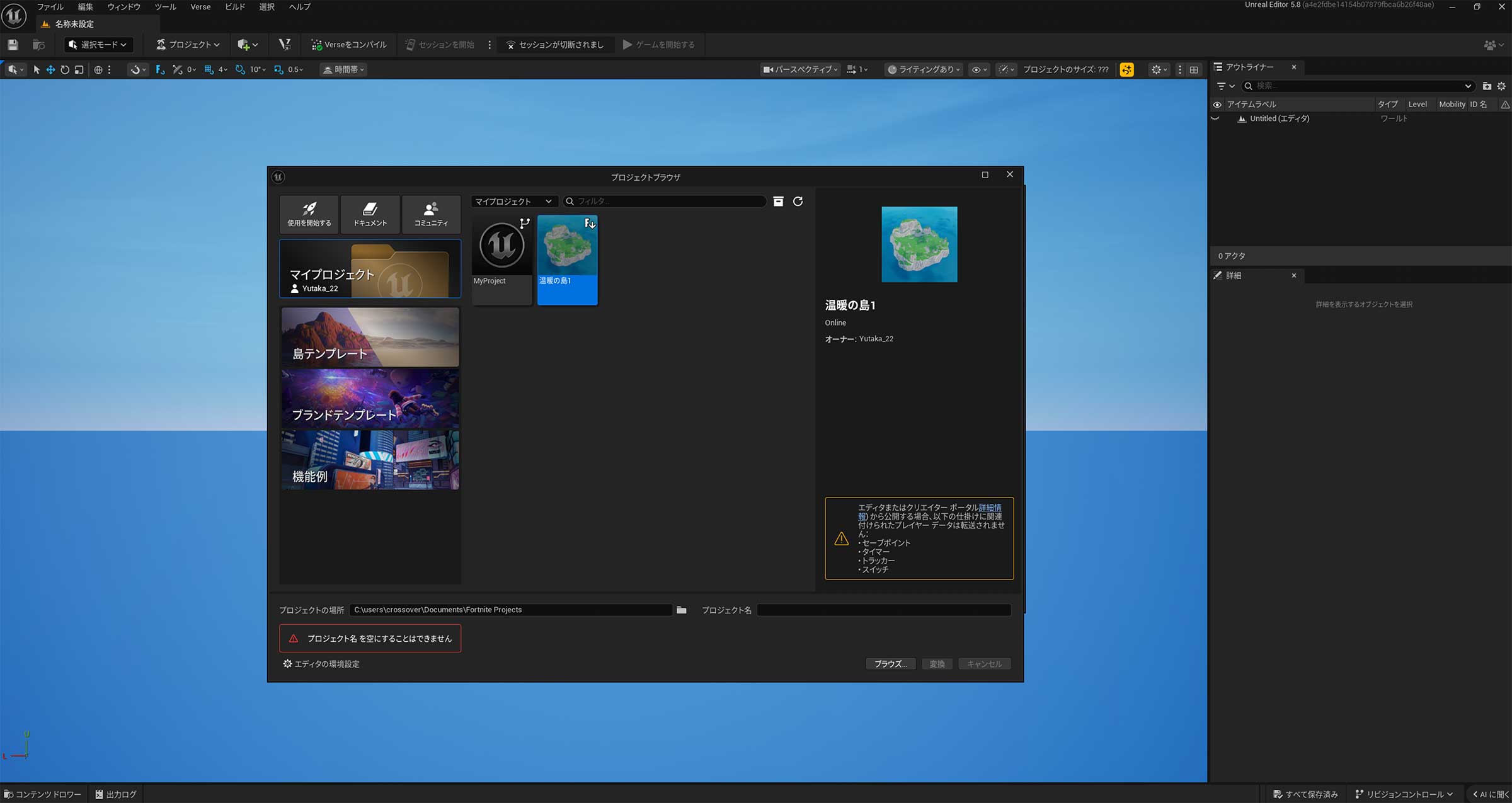 いちおう無事に「Unreal Editor for Fortnite」をMacで起動させることは出来ました。